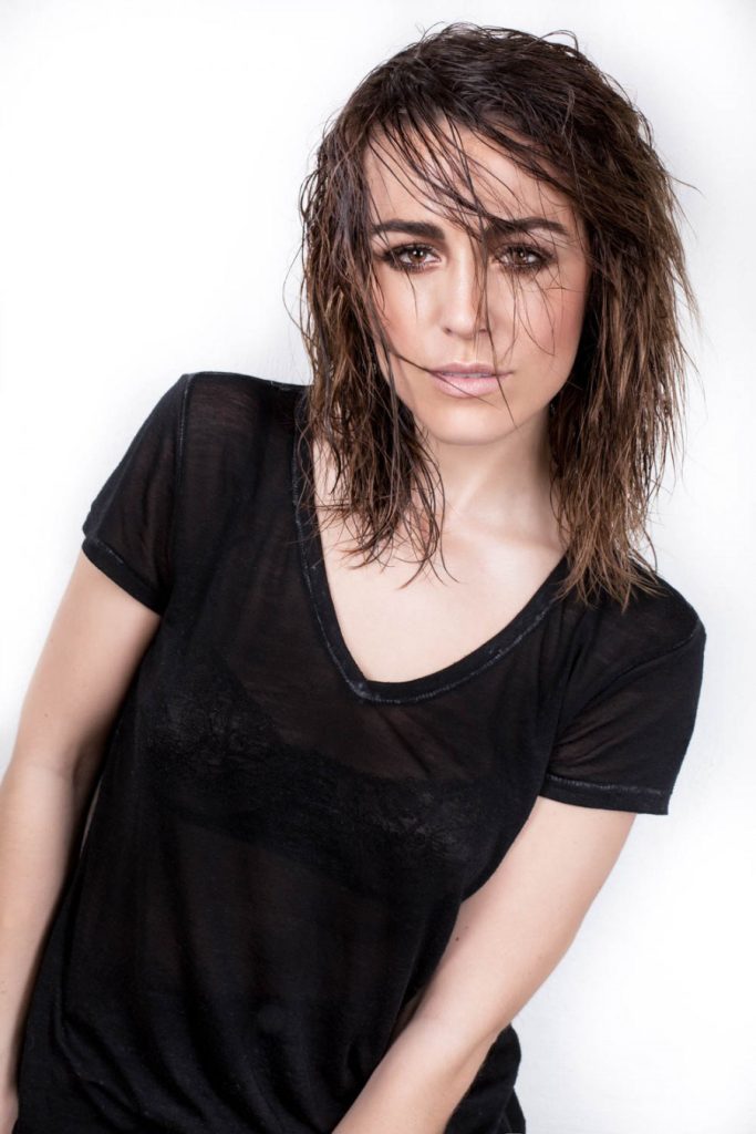 Planen er, at vi vil lave pressebilleder som er lidt casual-naturlige men med vores egne twists ???? Det ene look laver vi med smukke brune nuancer som passer flot til hendes fine brune øjne, og vi gør håret vådt, så et “wetlook” er i kameraets linse. Vi får skudt nogle fine billeder og vil også gerne lave nogle naturlige grinebilleder og DET er sjovt… det der med at grine på kommando kan man jo ikke, og det ender med at vi griner af, ikke at kunne grine – VUPTI! Der var den!